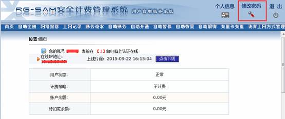3. 登陆后点击页面顶部右侧的【修改密码】,如下图