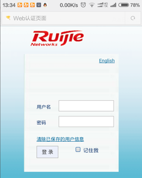 2.打开手机浏览器,访问任意网址,访问任意的网站,如百度www.baidu.com,或新浪www.sina.com.cn,会出现登录页面,如下图