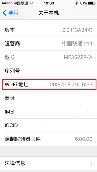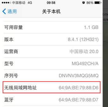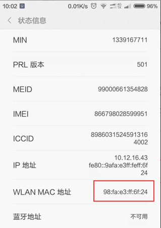 4.界面显示的“WLAN MAC地址”或“无线局域网地址”即为MAC地址,如下图